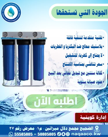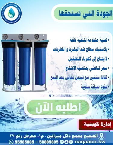 فلتر ماء جامبو مركزي 3 مراحل: الجودة القياسية مع أفضل خدمة تركيب وصيانة في الكويت