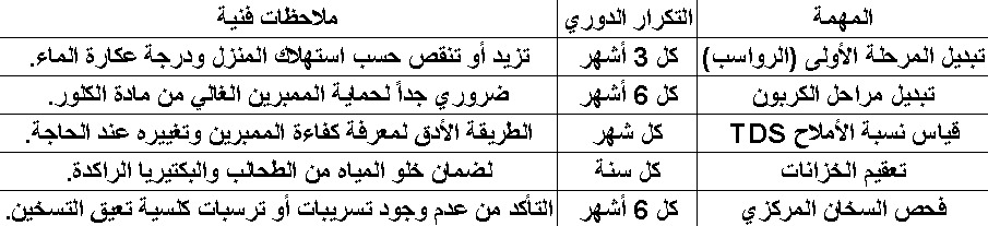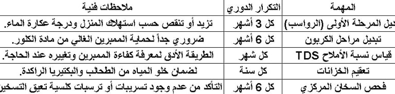 6- جدول الصيانة الوقائية المقترح من شركة نقاء